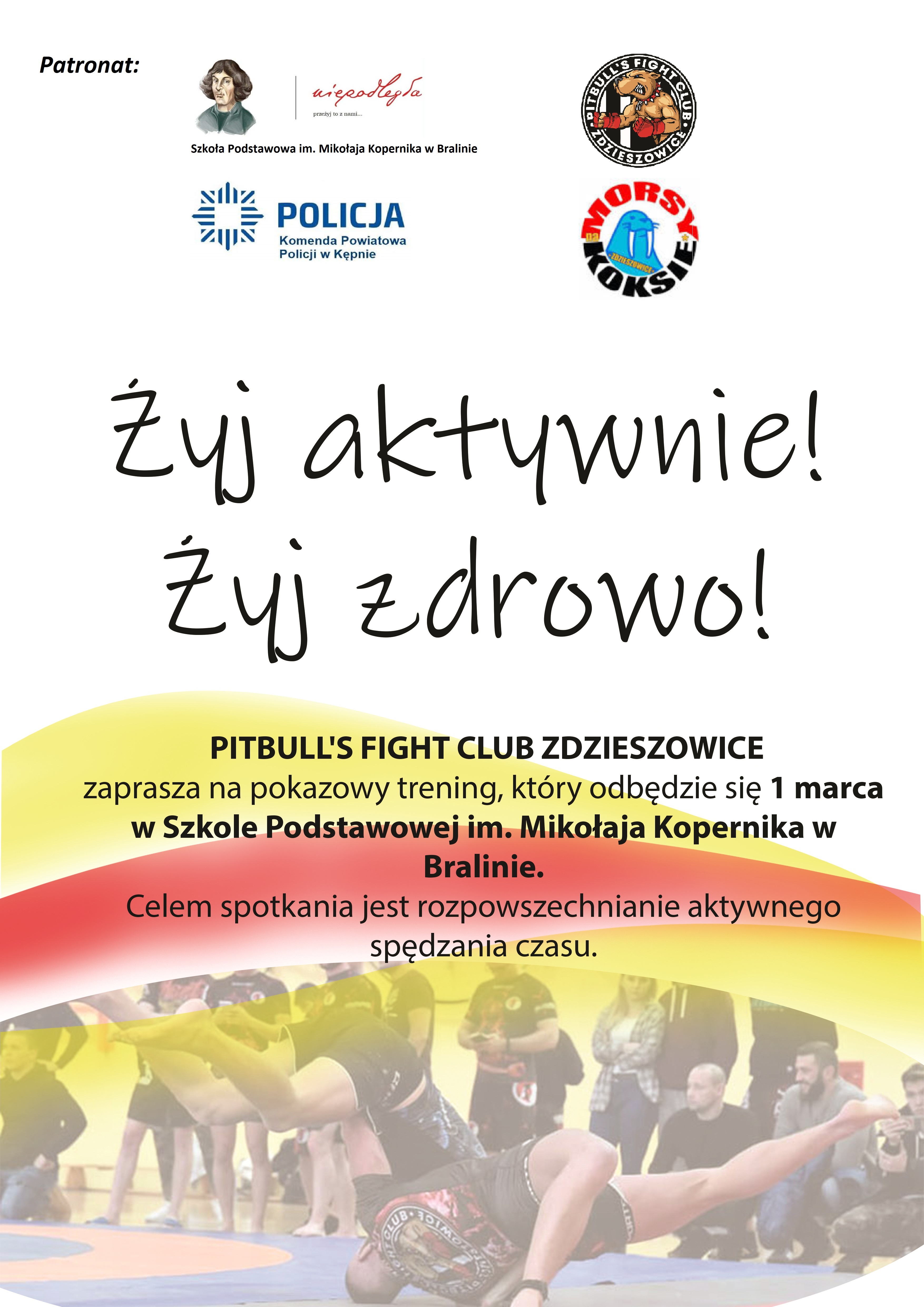 Niewątpliwie jednak, największą atrakcja będą zaproszeni goście z klubu sportowego Pitbull’s Fight Club Zdzieszowiece, którzy 1 marca w Szkole Podstawowej w Bralinie przeprowadzą pokazowy trening sztuk walk.