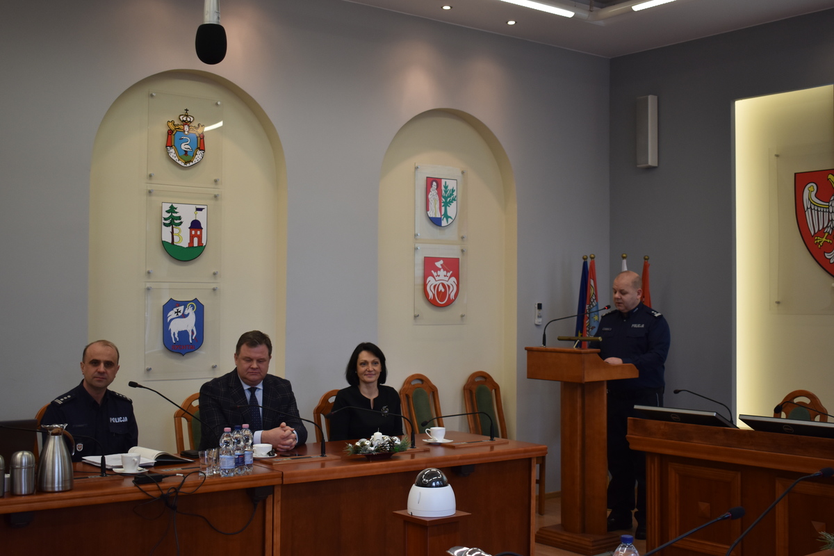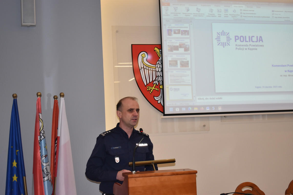 24 stycznia br. w sali sesyjnej Starostwa Powiatowego w Kępnie odbyła się narada roczna z udziałem I Zastępcy Komendanta Wojewódzkiego Policji w Poznaniu, insp. Sławomira Piekuta. Podczas spotkania podsumowano minione 12 miesięcy i wyznaczone istotne kierunki pracy w nowym roku. W spotkaniu uczestniczyli samorządowcy oraz służby współpracujące z Komendą Powiatową Policji w Kępnie na rzecz poprawy bezpieczeństwa.