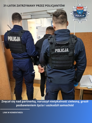 Mężczyzna, który został zatrzymany po awanturze domowej w Kępnie usłyszał zarzut znęcania się nad partnerką. Ponadto 31-latek naruszył nietykalność cielesną, groził pozbawieniem życia i uszkodził samochód ojca swojej partnerki. Otrzymał również prokuratorski zakaz zbliżania się i kontaktowania z pokrzywdzonymi, a także policyjny dozór. Teraz mężczyźnie grozi kara do 5 lat pozbawienia wolności.